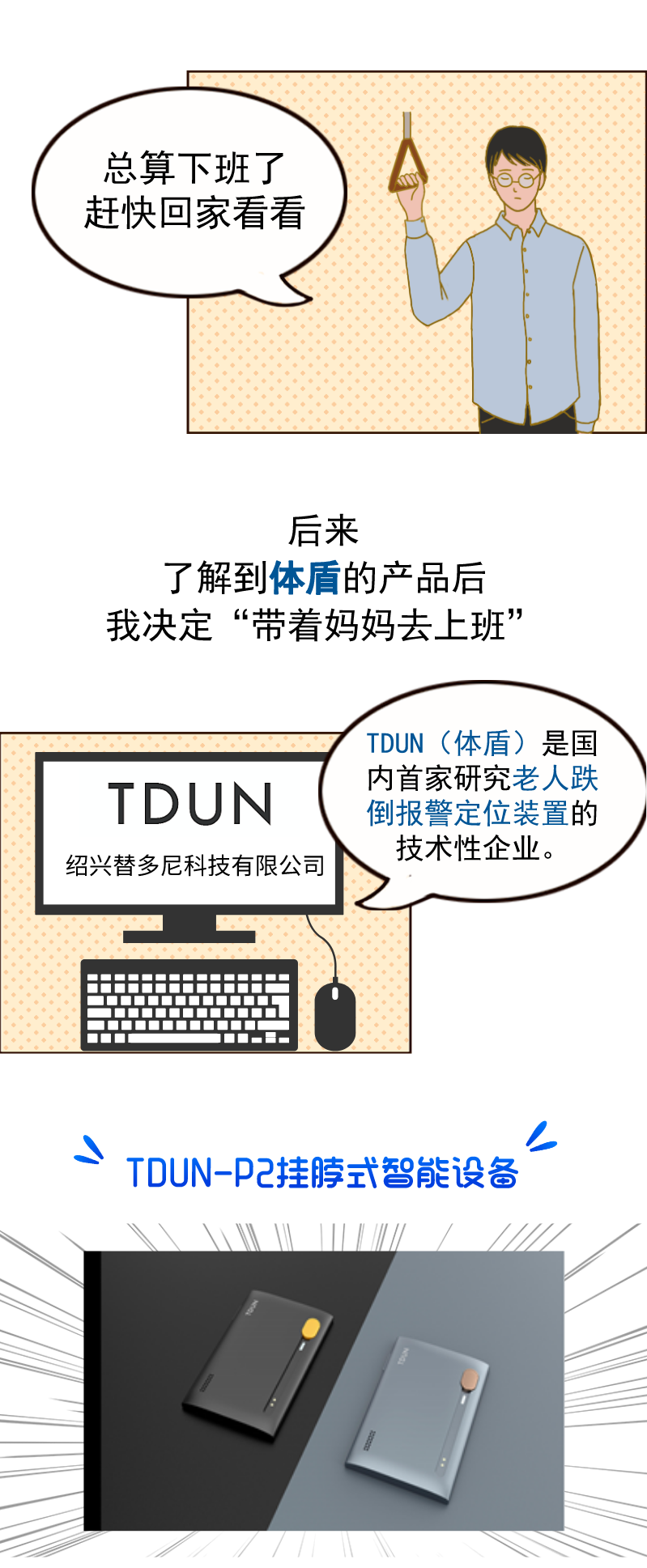 紹興替多尼科技有限公司(TDUN、體盾)成立于2018年,是國內首家研究老人跌倒報警定位裝置的技術性企業(yè),致力于老人跌倒報報警定位裝置、老人手機(帶跌倒報警,安全定位功能)、智能老人卡、跌倒手環(huán)、老人跌倒報警眼鏡。