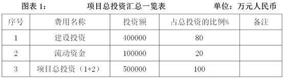 項(xiàng)目總投資500000萬元,其中固定資產(chǎn)投資400000萬元。