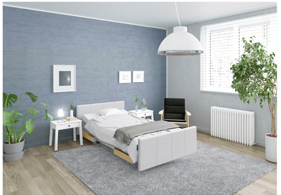可拆卸的側(cè)面飾板能夠隨意翻轉(zhuǎn)和替換,只需安裝一個獨立的轉(zhuǎn)動護欄或側(cè)面扶手,INTIME 1000就變成了護理床。
