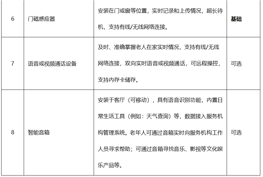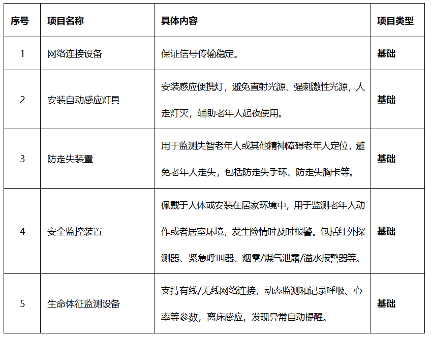服務(wù)機(jī)構(gòu)為老年人住所安裝包括防走失裝置、緊急呼叫器、煙霧/煤氣泄漏/溢水報(bào)警器等智能化設(shè)備,增強(qiáng)老年人居家生活的安全性、便利性和舒適性。