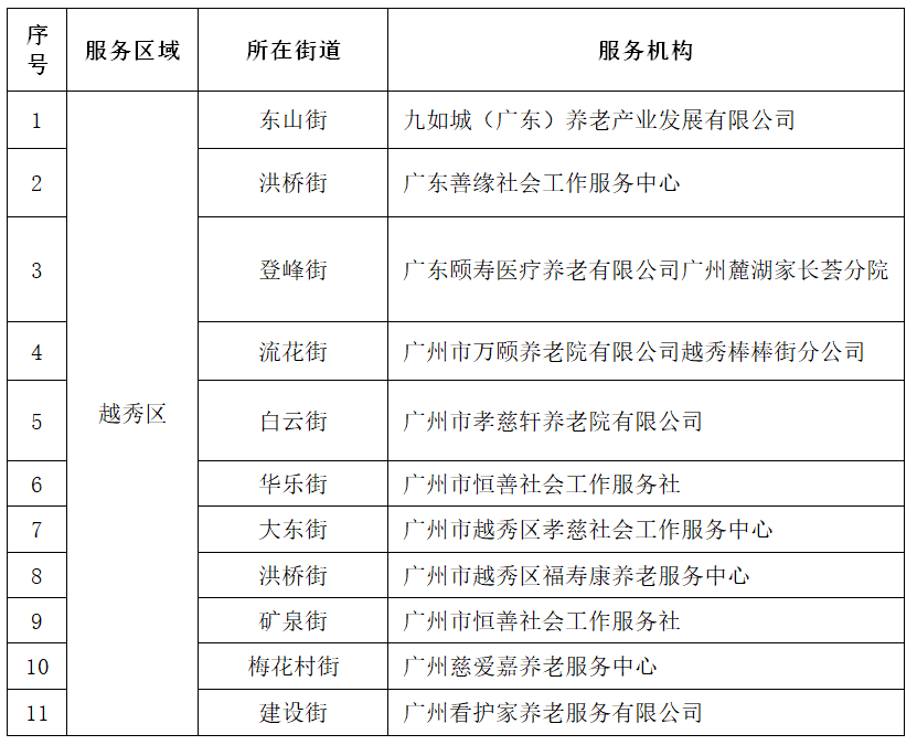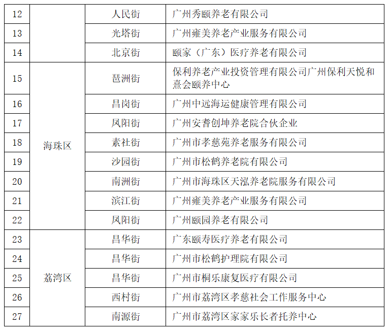廣州市家庭養(yǎng)老床位服務(wù)機(jī)構(gòu)一覽表