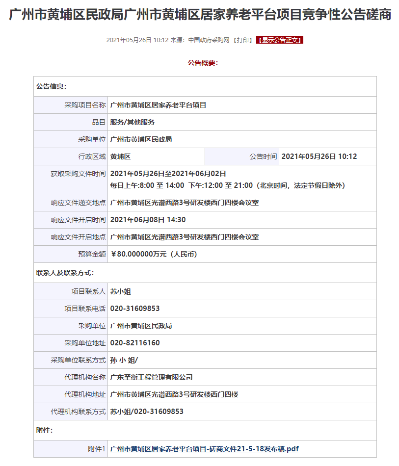 項(xiàng)目名稱:廣州市黃埔區(qū)居家養(yǎng)老平臺(tái)項(xiàng)目