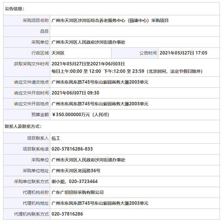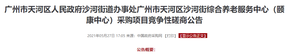 項(xiàng)目名稱:廣州市天河區(qū)沙河街綜合養(yǎng)老服務(wù)中心(頤康中心)采購(gòu)項(xiàng)目
