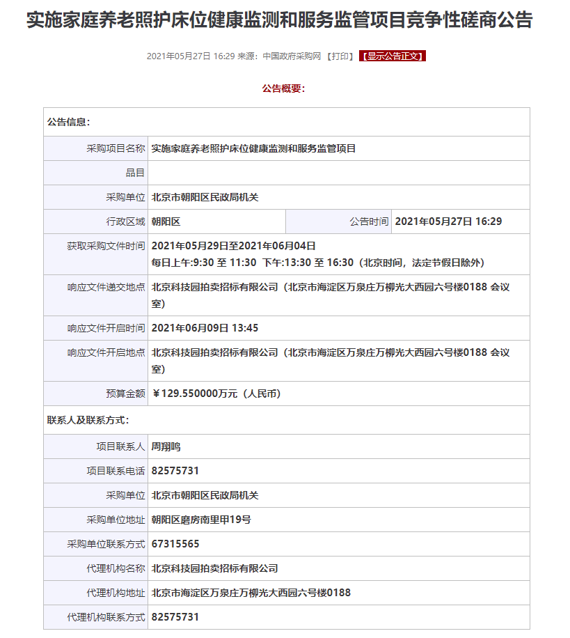 項(xiàng)目名稱:實(shí)施家庭養(yǎng)老照護(hù)床位健康監(jiān)測(cè)和服務(wù)監(jiān)管項(xiàng)目競(jìng)爭(zhēng)性磋商公告