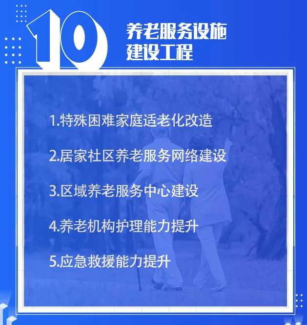 同時,“養(yǎng)老服務設施建設工程”被納入民政部“十四五”期間的十大重點工程之一。