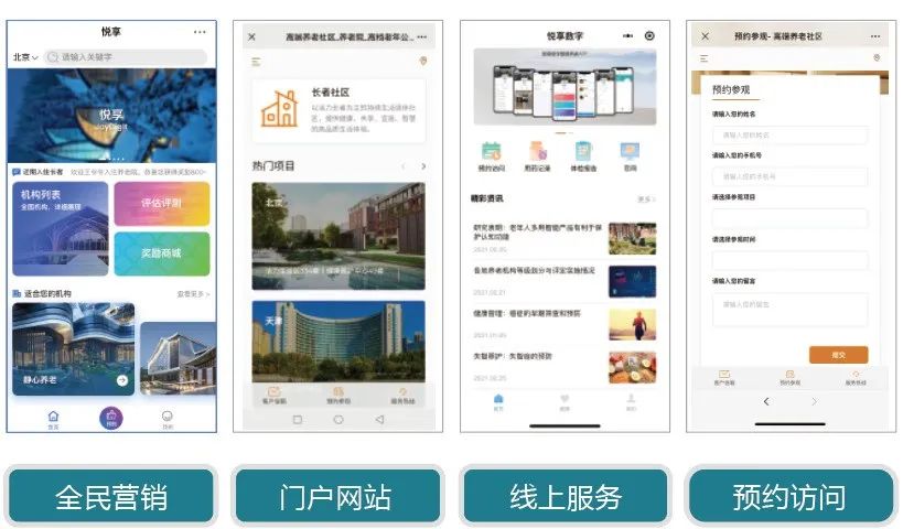 為養(yǎng)老企業(yè)打通全民營(yíng)銷、門(mén)戶網(wǎng)站、微信公眾號(hào)等多種獲客渠道;基于營(yíng)銷數(shù)據(jù)構(gòu)建統(tǒng)一的客戶畫(huà)像,實(shí)現(xiàn)精準(zhǔn)營(yíng)銷,同時(shí),實(shí)現(xiàn)在營(yíng)銷階段養(yǎng)老服務(wù)前置。