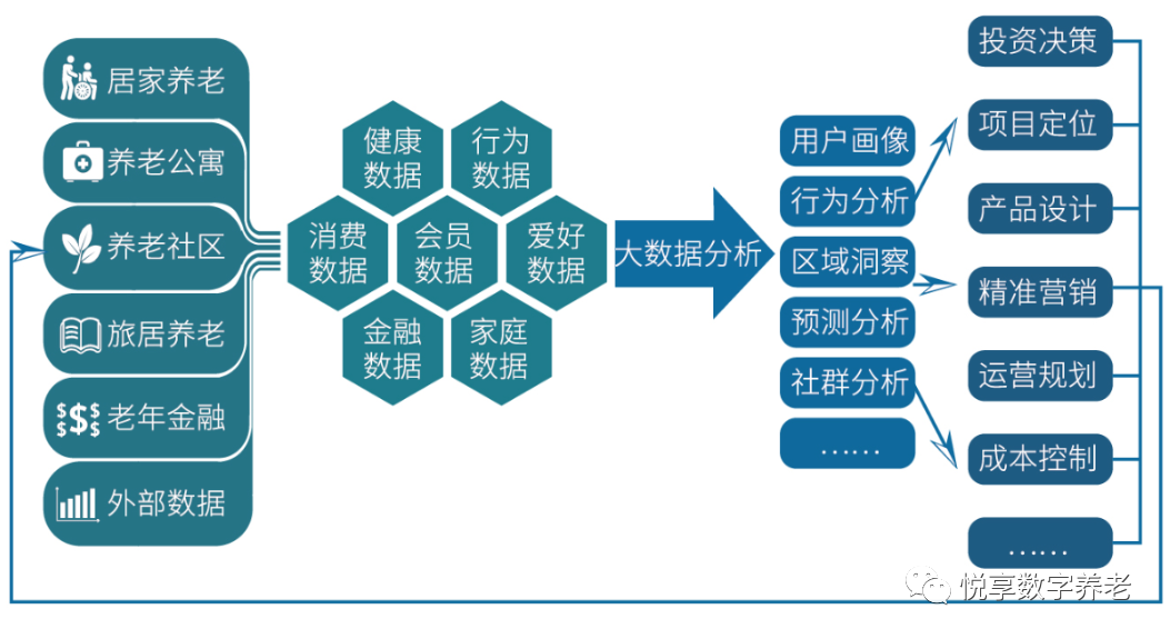 基于養(yǎng)老多業(yè)態(tài)營(yíng)銷和運(yùn)營(yíng)管理中積累的龐大數(shù)據(jù)體系,經(jīng)過(guò)清洗和分析,為養(yǎng)老產(chǎn)品設(shè)計(jì)和運(yùn)營(yíng)等重大決策提供數(shù)據(jù)支持。