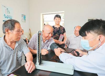 江西省萍鄉(xiāng)市湘東區(qū)在各村成立居家養(yǎng)老服務(wù)中心,為留守空巢老人、分散供養(yǎng)五保老人等群體提供緊急救助、生活照料、家政服務(wù)等基本服務(wù)。圖為日前在湘東區(qū)麻山鎮(zhèn)連山村的居家養(yǎng)老服務(wù)中心,醫(yī)務(wù)人員正為老人檢查身體。李桂東攝(人民視覺)