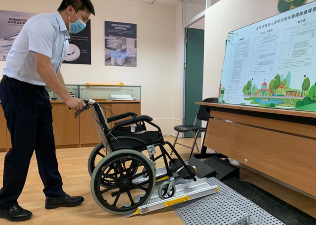 老人坐輪椅,小區(qū)卻沒(méi)有無(wú)障礙坡道?下樓的短短幾級(jí)臺(tái)階,往往成了老人的“攔路虎”。馮建表示,在實(shí)地評(píng)估的過(guò)程中發(fā)現(xiàn),并非所有小區(qū)的出入口都設(shè)計(jì)了無(wú)障礙坡道。但是很多老舊小區(qū),本身樓下的幾級(jí)臺(tái)階就不寬,如果都做成固定式的無(wú)障礙坡道,可能會(huì)影響其他居民通行。在這種情況下,通常服務(wù)商會(huì)為老人推薦可拆卸的移動(dòng)式無(wú)障礙坡道。這種無(wú)障礙坡道就像一塊塊樂(lè)高積木一樣,只需要拼接在一起,搭在臺(tái)階上就能使用了。
