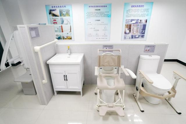 ↑承德市高新區(qū)濱河社區(qū)居家養(yǎng)老服務(wù)中心展示的適老化改造范例(2021年8月24日攝)。