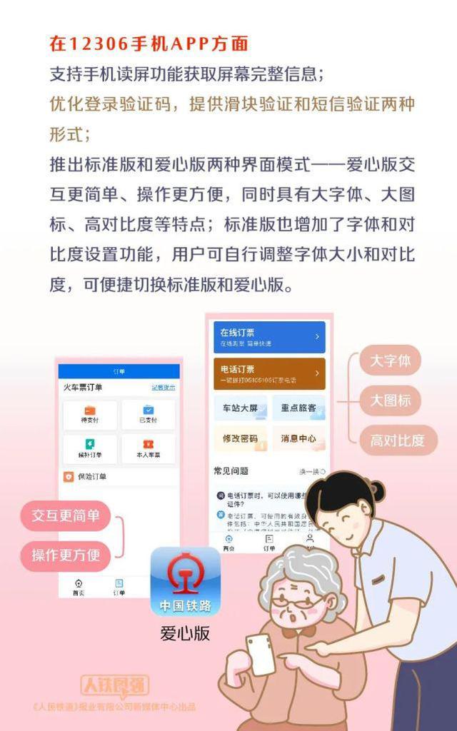 鐵路12306網(wǎng)站適老化無障礙功能上線后將更好地服務老年人和障礙人士歡迎廣大旅客提出寶貴意見和建議鐵路部門將持續(xù)完善12306服務功能提供更好的購票體驗