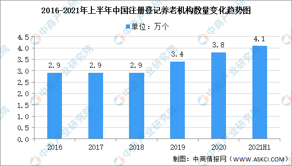 隨著人口老齡化加劇,養(yǎng)老機(jī)構(gòu)需求增加。2020年全國注冊(cè)登記的養(yǎng)老機(jī)構(gòu)3.8萬個(gè),比上年增加0.4萬個(gè),2021年上半年全國注冊(cè)登記的養(yǎng)老機(jī)構(gòu)達(dá)40749個(gè)。