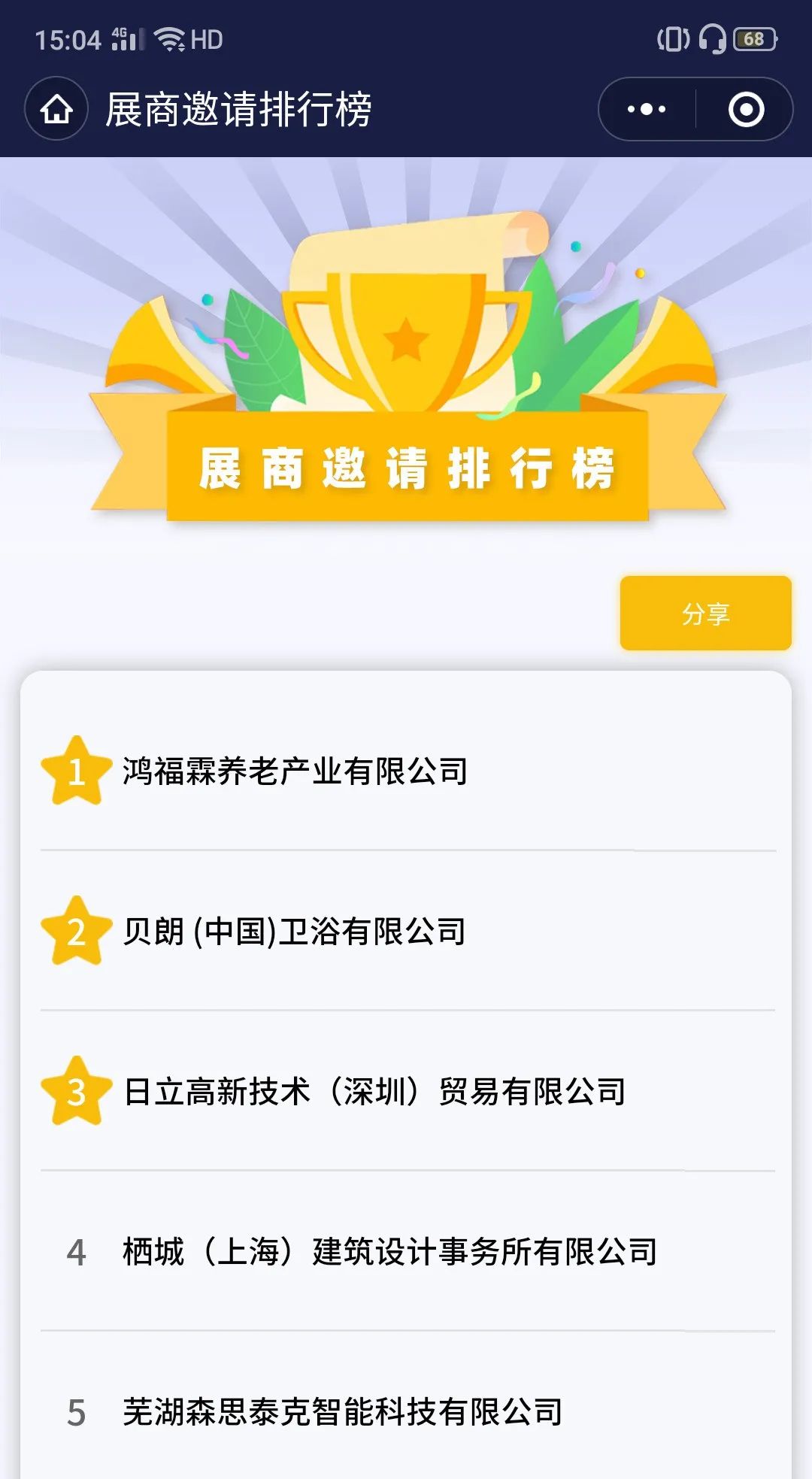 打開邀請函的客戶可以點擊“收藏”展商頁面,被客戶收藏越多,展商列表日排名靠前哦!