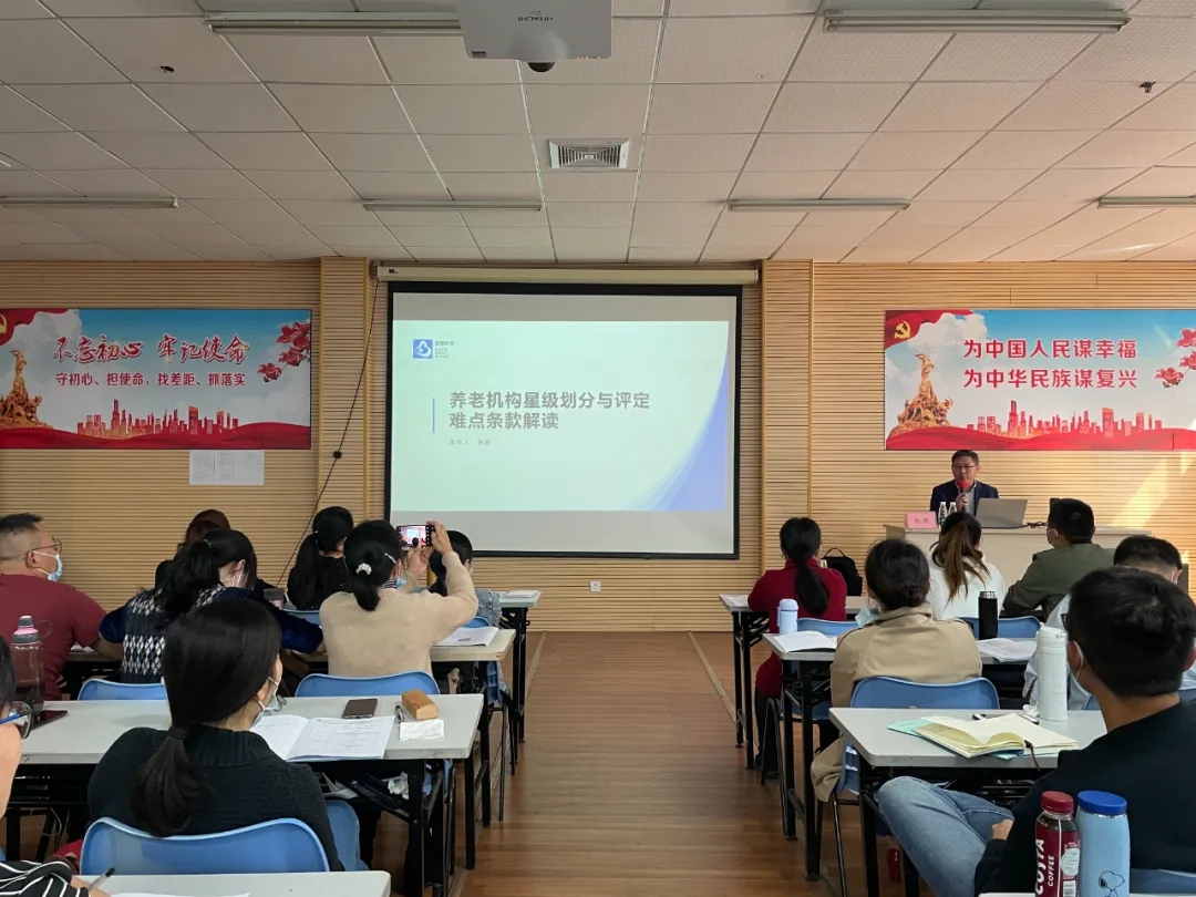 由廣東省養(yǎng)老服務(wù)標準化技術(shù)委員會委員張凱講授了第三堂課。他對星級評定的文件,向參與本次培訓的學員進行了重點講解里面的條款內(nèi)容。