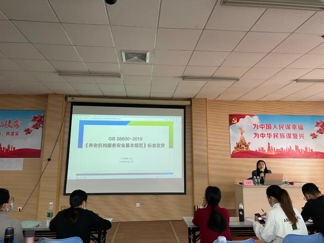 由廣州市老人院質(zhì)控安全部部長張燕坤講授了第五堂課。她講到:標準是風險防控的有效工具,服務(wù)安全有標準可守、有規(guī)矩可循,養(yǎng)老機構(gòu)管理者和服務(wù)人員需提高安全意識,預防在前,才能提高服務(wù)質(zhì)量,提升經(jīng)濟效益和社會效益。