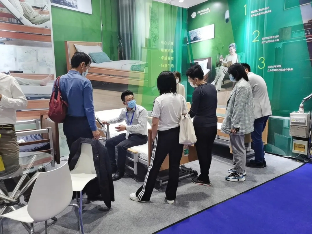 德國添康盛裝亮相此次展會,同時展示了主推產(chǎn)品。德國添康擁有30年專業(yè)設(shè)計(jì)生產(chǎn)電動護(hù)理床的經(jīng)驗(yàn),同時獲得多項(xiàng)國內(nèi)外專利,其家居溫馨的精致設(shè)計(jì)和醫(yī)用級的品質(zhì)體驗(yàn)備受參展觀眾的青睞,吸引了眾多觀眾前來咨詢。