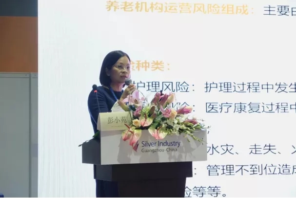 廣東省護(hù)士協(xié)會長期護(hù)理分會會長、廣州泰康粵園醫(yī)院院長彭小苑女士,以泰康粵園醫(yī)院為例,從養(yǎng)老機(jī)構(gòu)運(yùn)營風(fēng)險概述、養(yǎng)老機(jī)構(gòu)運(yùn)營風(fēng)險特點、養(yǎng)老機(jī)構(gòu)運(yùn)營體系建設(shè)、風(fēng)險體系與服務(wù)體系接軌四方面,介紹養(yǎng)老機(jī)構(gòu)風(fēng)險管理體系如何與服務(wù)體系有機(jī)結(jié)合。