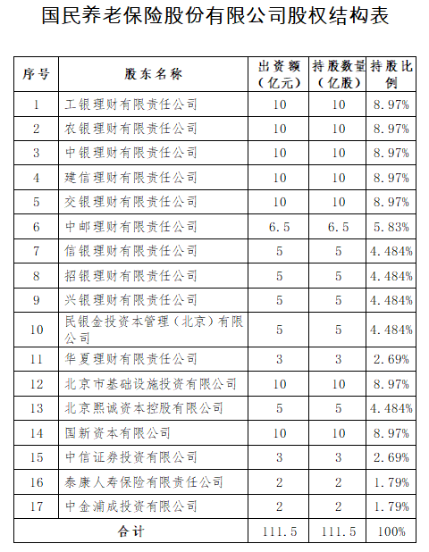 2021年9月2日,中國銀保監(jiān)會批復(fù)籌建國民養(yǎng)老保險股份有限公司,公司由北京市政府大力推動,工銀理財、農(nóng)銀理財及北京基礎(chǔ)設(shè)施投資有限公司等17家公司共同發(fā)起。經(jīng)過近7個月的籌建期,國民養(yǎng)老終于順利通過監(jiān)管現(xiàn)場驗收,并成功取得開業(yè)批復(fù)。