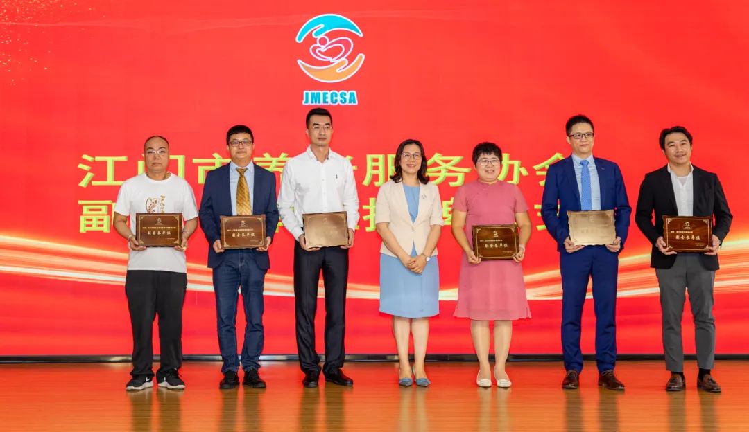 ▲江門市民政局黨組書記、局長(zhǎng)謝鴻猷為當(dāng)選會(huì)長(zhǎng)單位頒發(fā)牌匾