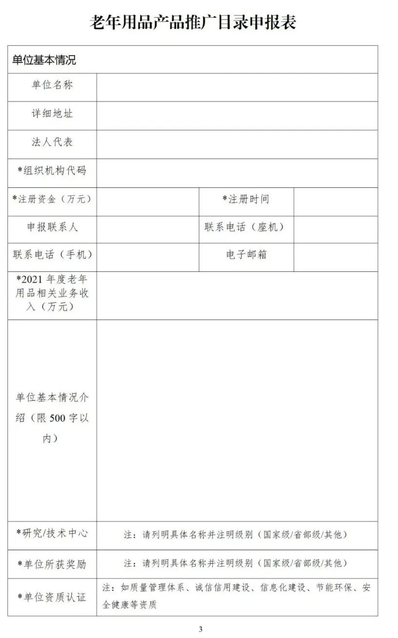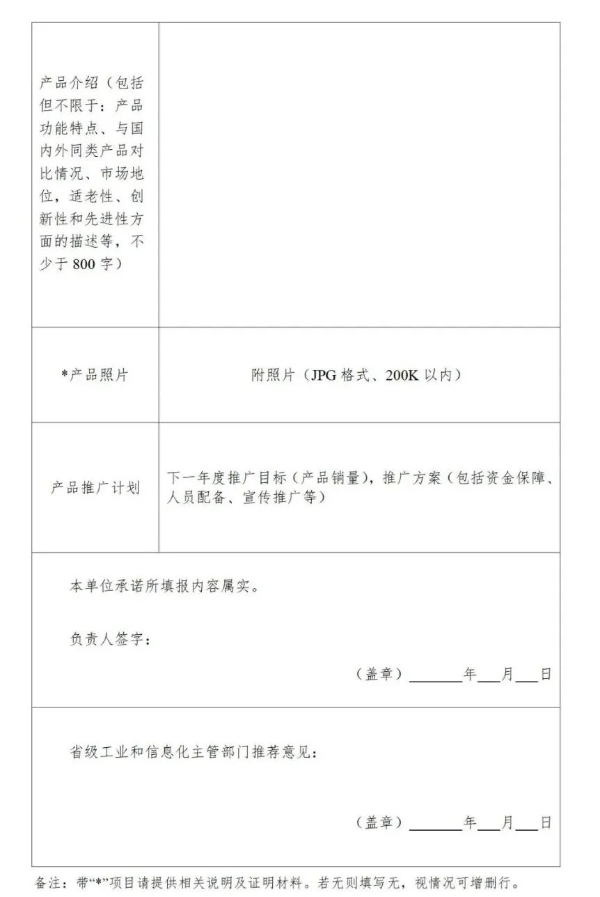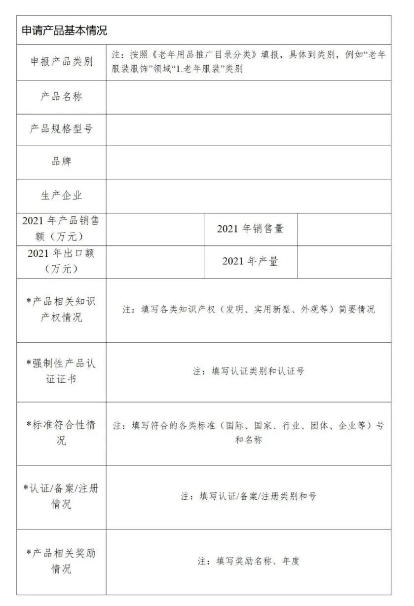 2.老年用品產(chǎn)品推廣目錄申報書