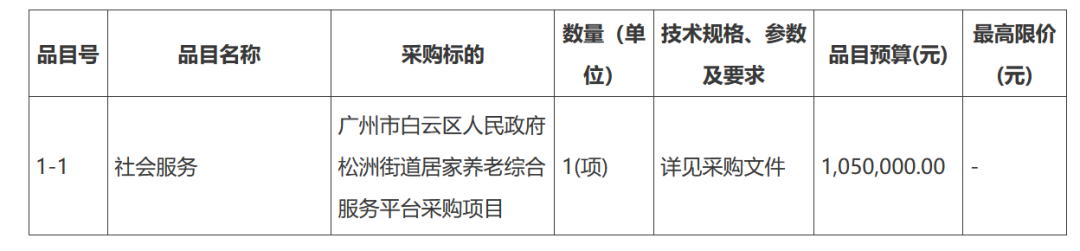項目名稱:廣州市白云區(qū)人民政府松洲街道居家養(yǎng)老綜合服務(wù)平臺采購項目