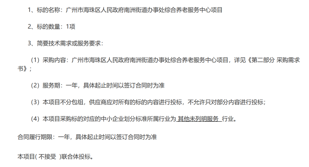 項目名稱:廣州市海珠區(qū)人民政府南洲街道辦事處綜合養(yǎng)老服務(wù)中心項目競爭性磋商