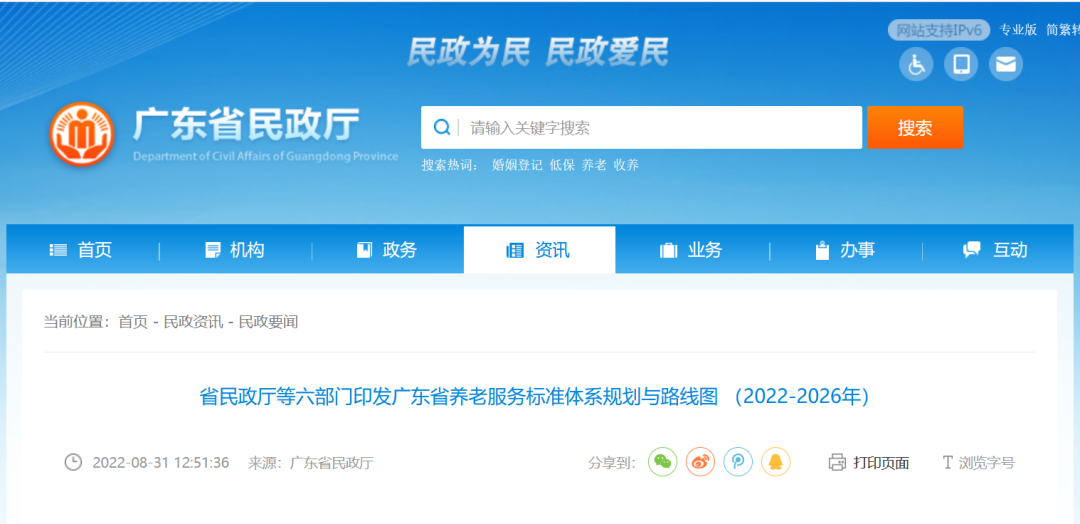 標(biāo)準(zhǔn)化建設(shè)是養(yǎng)老服務(wù)業(yè)持續(xù)高質(zhì)量發(fā)展的重要保障。日前,為積極實(shí)施應(yīng)對(duì)人口老齡化國(guó)家戰(zhàn)略,發(fā)揮標(biāo)準(zhǔn)化在養(yǎng)老服務(wù)行業(yè)中的技術(shù)引領(lǐng)和支撐作用,加快標(biāo)準(zhǔn)化協(xié)同推進(jìn)大養(yǎng)老服務(wù)體系建設(shè),廣東省民政廳、廣東省工業(yè)和信息化廳、廣東省人力資源和社會(huì)保障廳、廣東省衛(wèi)生健康委、廣東省市場(chǎng)監(jiān)督管理局、廣東省政務(wù)服務(wù)數(shù)據(jù)管理局聯(lián)合印發(fā)《廣東省養(yǎng)老服務(wù)標(biāo)準(zhǔn)體系規(guī)劃與路線圖(2022-2026)》(以下簡(jiǎn)稱《規(guī)劃與路線圖》)?!兑?guī)劃與路線圖》的出臺(tái)是高標(biāo)準(zhǔn)引領(lǐng)養(yǎng)老服務(wù)高質(zhì)量發(fā)展的一項(xiàng)重要舉措,對(duì)廣東現(xiàn)行有效標(biāo)準(zhǔn)進(jìn)行了全面梳理,對(duì)未來五年養(yǎng)老服務(wù)標(biāo)準(zhǔn)制定工作進(jìn)行了系統(tǒng)規(guī)劃、提供了清晰指引。