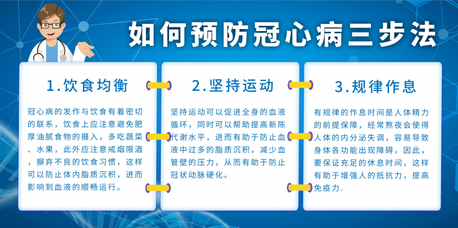 體育鍛煉是冠心病綜合治療的組成部分,有助于減少心肌梗塞的發(fā)生和死亡率。可進行中等強度的步行等有氧訓練。還可配合太極拳、氣功等,心率一般控制在130次/分左右。切記在心絞痛發(fā)作和心肌梗塞病灶尚未修復時期不要運動。