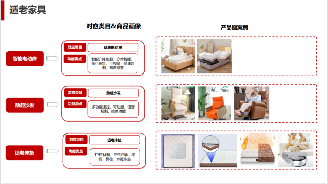 從適老家居市場前景、行業(yè)用戶發(fā)展趨勢以及商品畫像等行業(yè)動態(tài)的調查分析入手,講解了適老行業(yè)商家如何進行團隊搭建以及產品規(guī)劃,適老行業(yè)如何利用自身的核心能力和資源。
