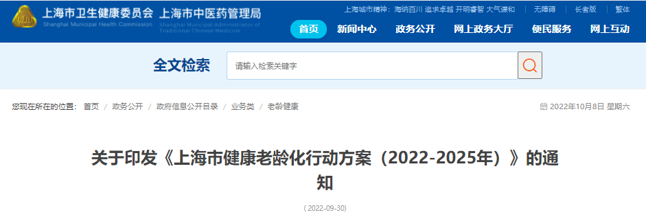 關(guān)于印發(fā)《上海市健康老齡化行動方案(2022-2025年)》的通知