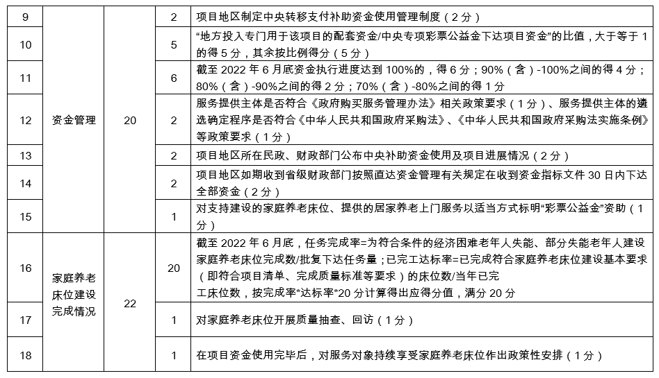 成果驗(yàn)收內(nèi)容主要包括項(xiàng)目組織管理、規(guī)范標(biāo)準(zhǔn)制定、資金管理、家庭養(yǎng)老床位建設(shè)、居家養(yǎng)老上門服務(wù)、配套支持保障、典型經(jīng)驗(yàn)總結(jié)等七方面情況。每項(xiàng)驗(yàn)收內(nèi)容細(xì)分為若干驗(yàn)收指標(biāo),并對應(yīng)相應(yīng)分值,形成《2021年居家和社區(qū)基本養(yǎng)老服務(wù)提升行動項(xiàng)目成果驗(yàn)收評價標(biāo)準(zhǔn)》(以下簡稱《驗(yàn)收評價標(biāo)準(zhǔn)》,見附件1)。