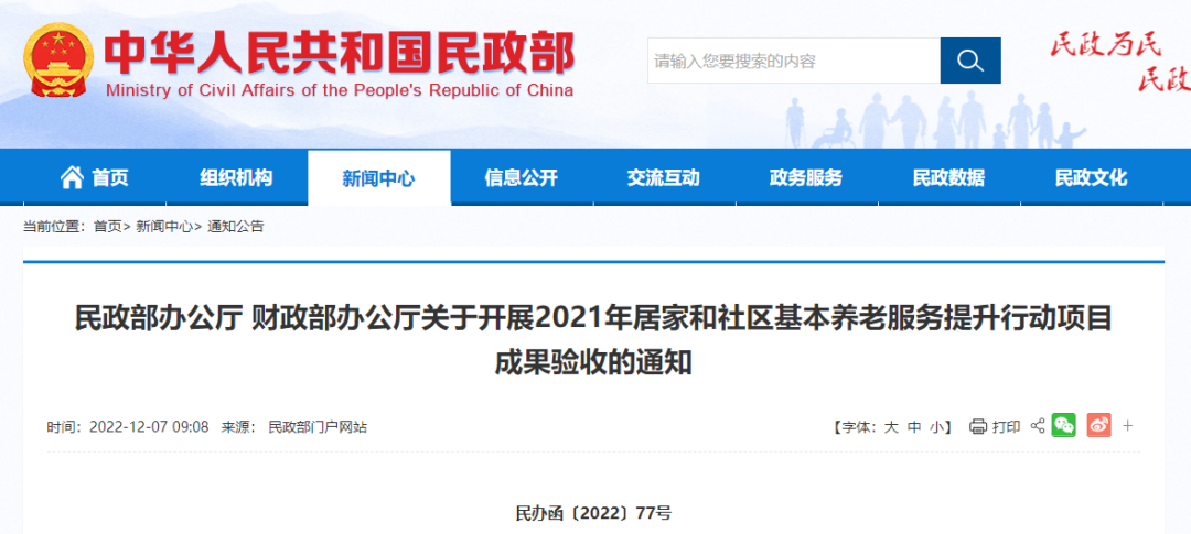 【重磅】民政部、財政部發(fā)布《關(guān)于開展2021年居家和社區(qū)基本養(yǎng)老服務(wù)提升行動項(xiàng)目成果驗(yàn)收的通知》