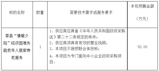 項目名稱:山東省聊城市莘縣“情暖夕陽”經(jīng)濟困難失能老年人居家養(yǎng)老服務項目