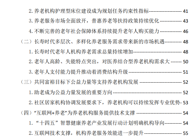 當(dāng)前,我國正處在從輕度老齡化邁進(jìn)中度老齡化的發(fā)展階段。國家衛(wèi)健委統(tǒng)計(jì)數(shù)據(jù)顯示,我國人均預(yù)期壽命由上世紀(jì)50年代初期的35歲提升到2021年的78.2歲。在長壽時(shí)代,機(jī)構(gòu)養(yǎng)老服務(wù)潛在需求規(guī)模持續(xù)擴(kuò)大,專業(yè)化、普惠化、綜合性的服務(wù)需求更加突出。