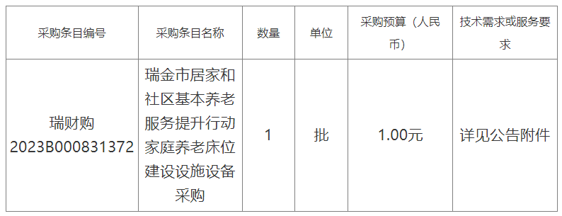 項目名稱:江西省瑞金市民政局瑞金市居家和社區(qū)基本養(yǎng)老服務(wù)提升行動家庭養(yǎng)老床位建設(shè)設(shè)施設(shè)備采購項目(項目編號:GZJX2023-RJ-X001)的詢價采購公告