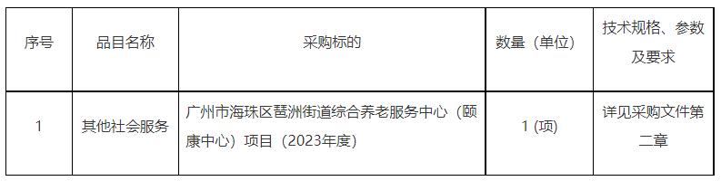 項目名稱:廣東省廣州市海珠區(qū)琶洲街道綜合養(yǎng)老服務(wù)中心(頤康中心)項目(2023年度)競爭性磋商公告