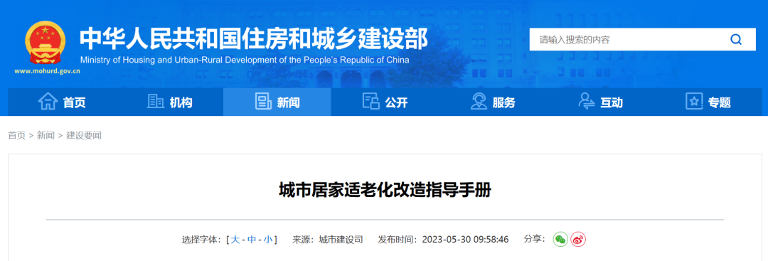 為落實(shí)黨的二十大關(guān)于“實(shí)施積極應(yīng)對(duì)人口老齡化國(guó)家戰(zhàn)略”“打造宜居、韌性、智慧城市”的重要部署,住房和城鄉(xiāng)建設(shè)部城市建設(shè)司組織編制了《城市居家適老化改造指導(dǎo)手冊(cè)》,從推動(dòng)居家適老化改造開始,讓老年人住得更放心、更舒心。