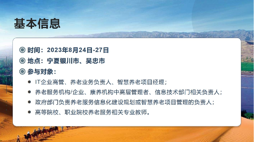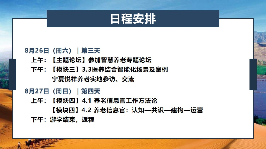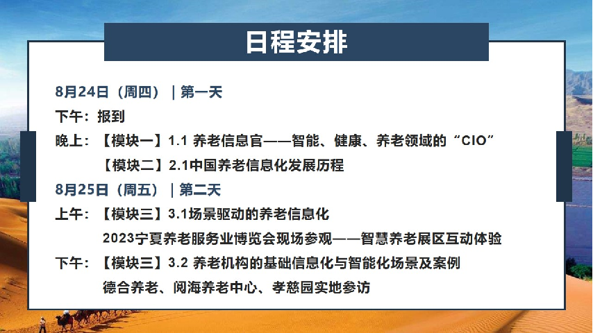 附“養(yǎng)老信息官”培訓(xùn)暨西部康養(yǎng)游學(xué)季寧夏站具體行程
