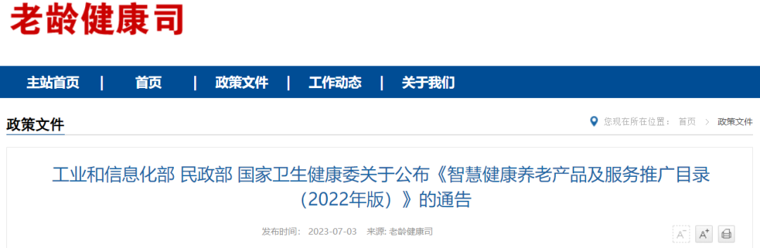 工業(yè)和信息化部 民政部 國(guó)家衛(wèi)生健康委關(guān)于公布《智慧健康養(yǎng)老產(chǎn)品及服務(wù)推廣目錄(2022年版)》的通告