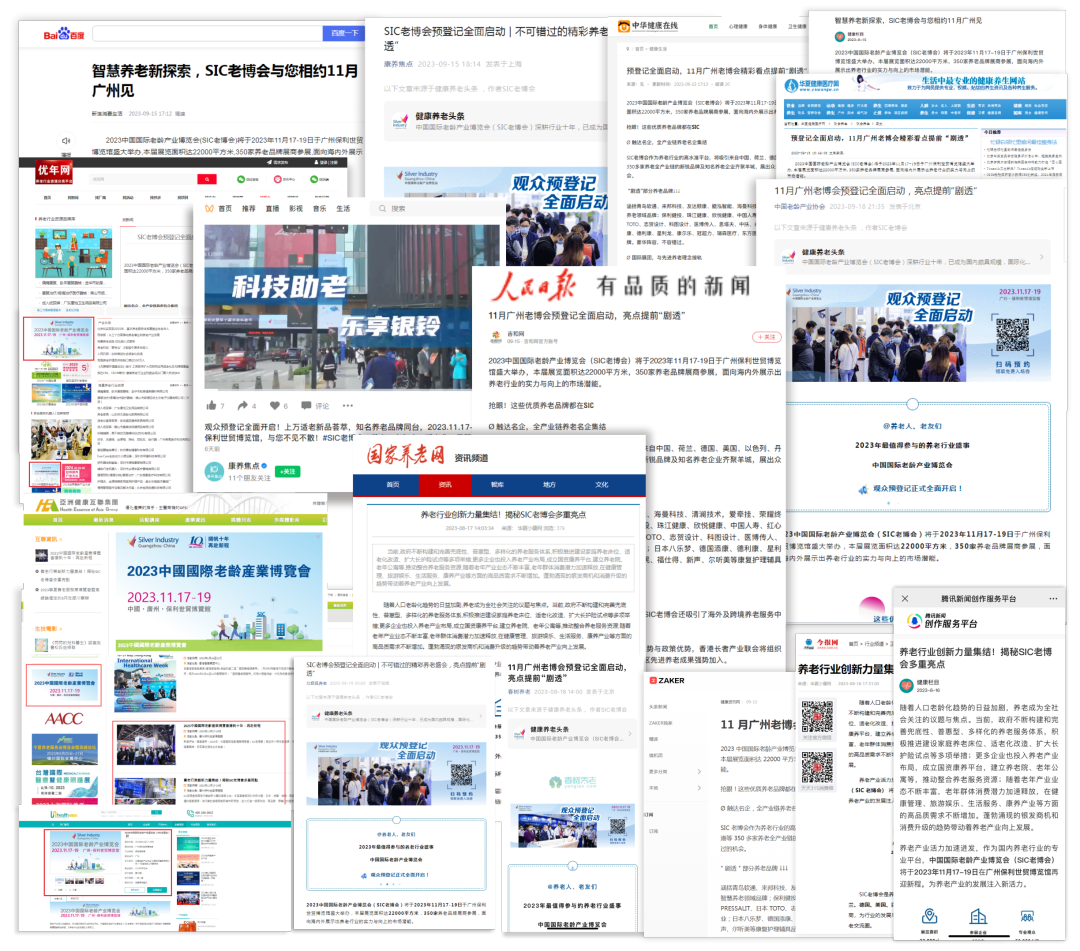 SIC老博會目前已與上百家媒體建立合作關(guān)系,通過媒體平臺定期發(fā)布大量展會最新資訊,加大行業(yè)曝光度。目前已有人民日報、中國社會報、環(huán)球時報、人民網(wǎng)、中國網(wǎng)等主流媒體,廣州廣播電視臺、廣州日報、羊城晚報等本地媒體和環(huán)球老齡、阿沐養(yǎng)老、康養(yǎng)焦點(diǎn)、中國養(yǎng)老網(wǎng)、春樹養(yǎng)老、優(yōu)年網(wǎng)等行業(yè)媒體確定合作。