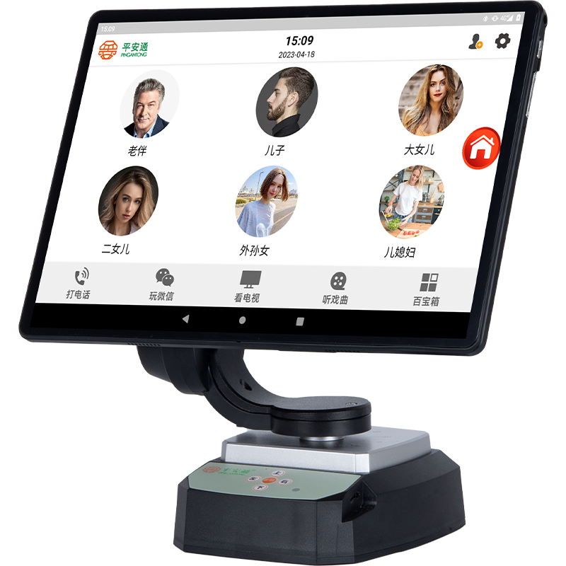 平安通陪護(hù)巡檢機(jī)首頁桌面用真人大圖排列,找誰點(diǎn)誰,一鍵自動(dòng)撥打視頻/語音/電話;一鍵返回并清理內(nèi)存;智能輔助來電自動(dòng)接聽;視頻遠(yuǎn)程監(jiān)護(hù),子女端可以控制巡檢機(jī)水平355度轉(zhuǎn)向,上下35度俯仰。它還是個(gè)報(bào)警器,可以接入安全監(jiān)護(hù)設(shè)備,監(jiān)護(hù)老人居家安全。采用純凈版安卓系統(tǒng),安全無廣告;影音娛樂一應(yīng)俱全,還可以自行下載各種適老軟件。