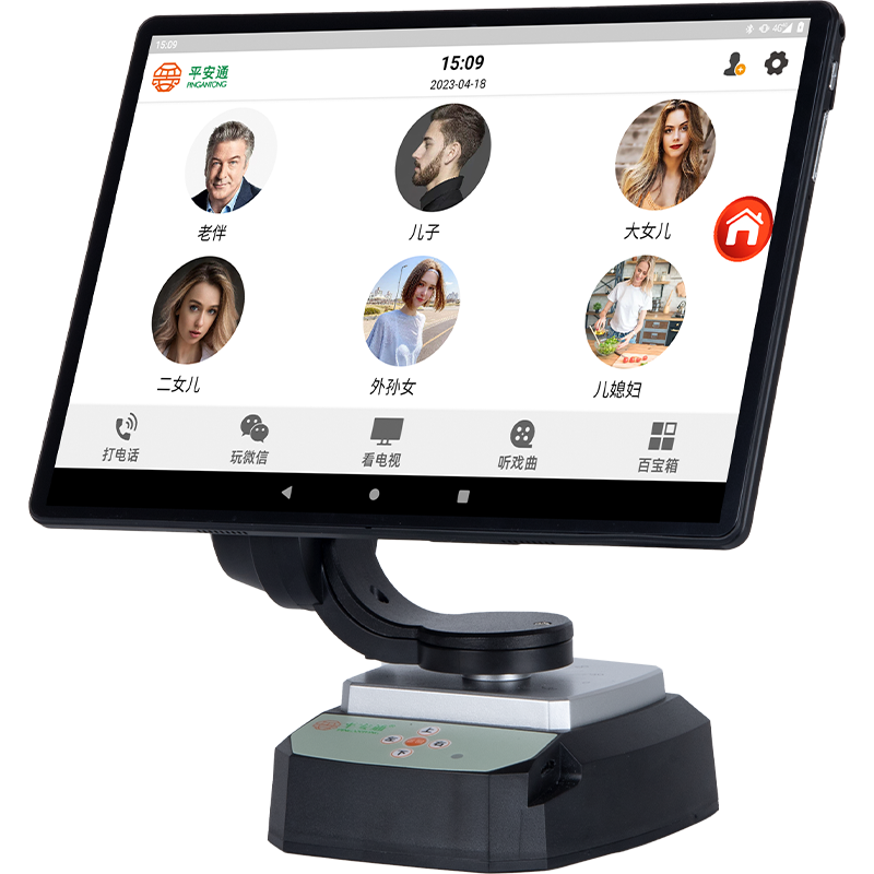 平安通陪護巡檢機首頁桌面用真人大圖排列,找誰點誰,一鍵自動撥打視頻/語音/電話;一鍵返回并清理內(nèi)存;智能輔助來電自動接聽;視頻遠(yuǎn)程監(jiān)護,子女端可以控制巡檢機水平355度轉(zhuǎn)向,上下35度俯仰。它還是個報警器,可以接入安全監(jiān)護設(shè)備,監(jiān)護老人居家安全。采用純凈版安卓系統(tǒng),安全無廣告;影音娛樂一應(yīng)俱全,還可以自行下載各種適老軟件。