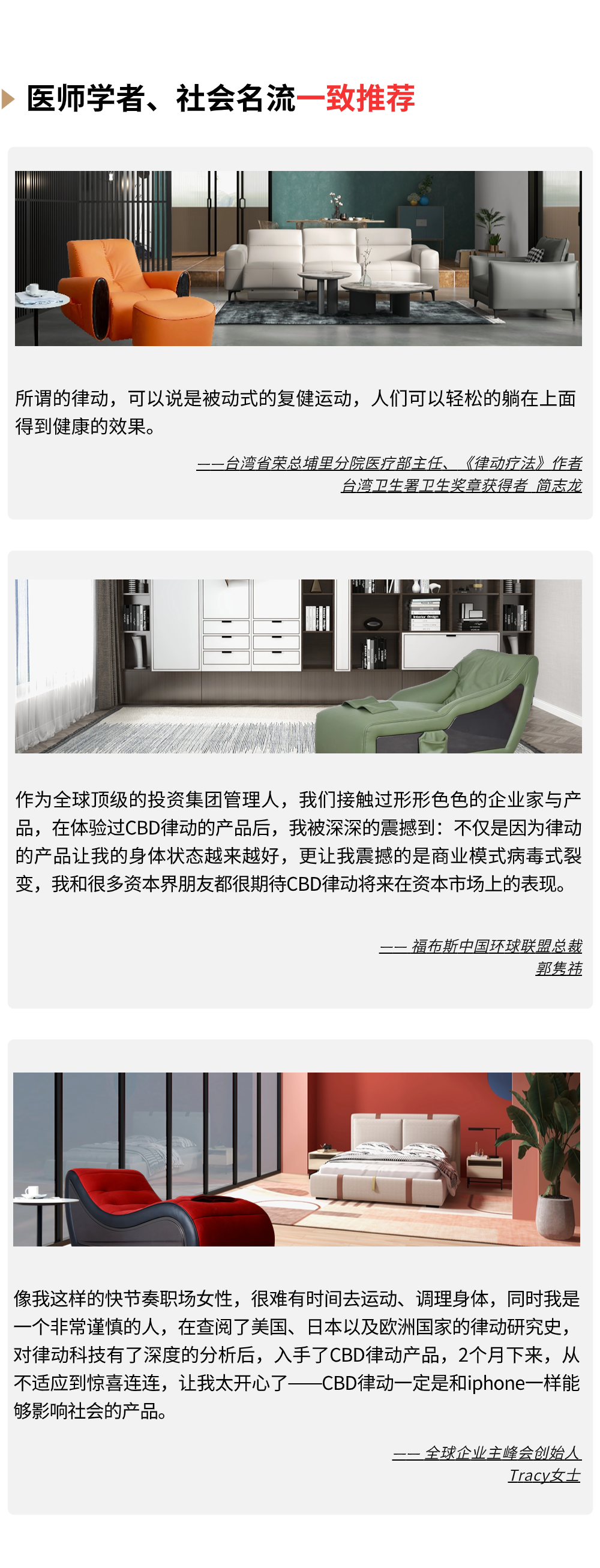 CBD家居,主要從事中高檔軟體家具、 木質(zhì)家居及配套產(chǎn)品的研發(fā)、 設(shè)計、生產(chǎn)與銷售,為客戶提供一站式的家居解決方案,獨家研發(fā)的律動健康產(chǎn)品是公司在大健康領(lǐng)域的開山之作。經(jīng)過20多年的發(fā)展,CBD家居成為國家高新技術(shù)企業(yè),公司銷售網(wǎng)絡(luò)覆蓋全球20多個國家和地區(qū);同時被認定為廣東省智能高端家居產(chǎn)品研發(fā)設(shè)計工程技術(shù)研究中心,榮獲”廣東知名品牌”、“深圳知名品牌”等稱號!