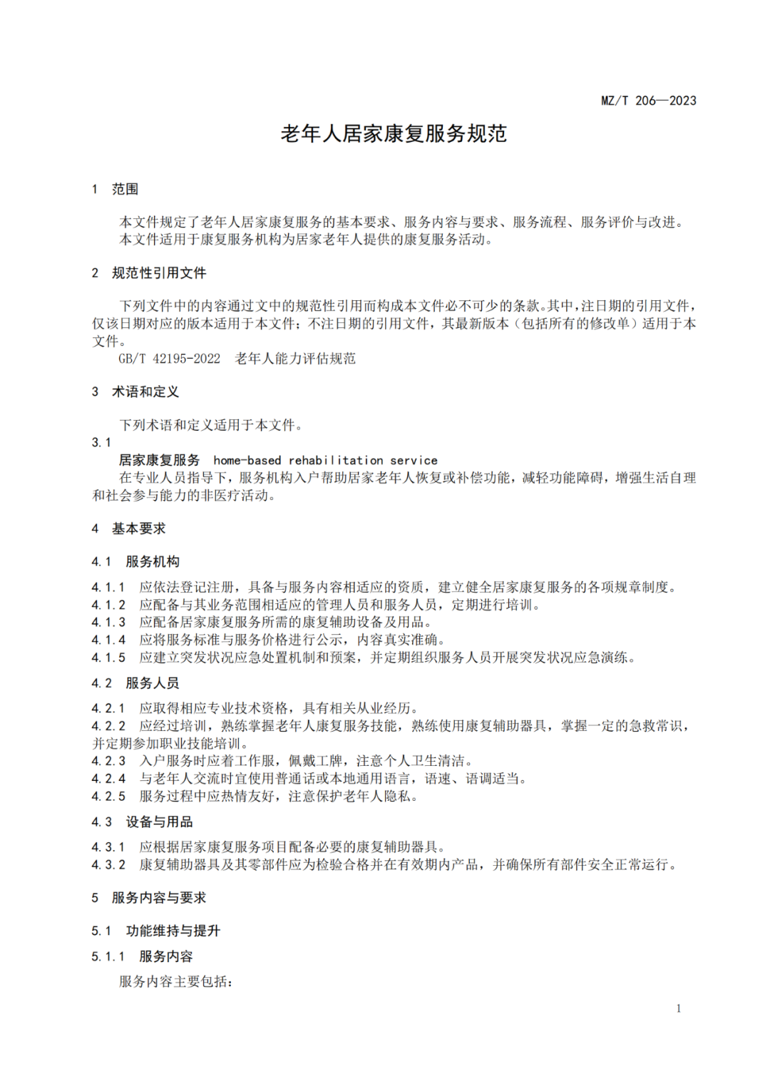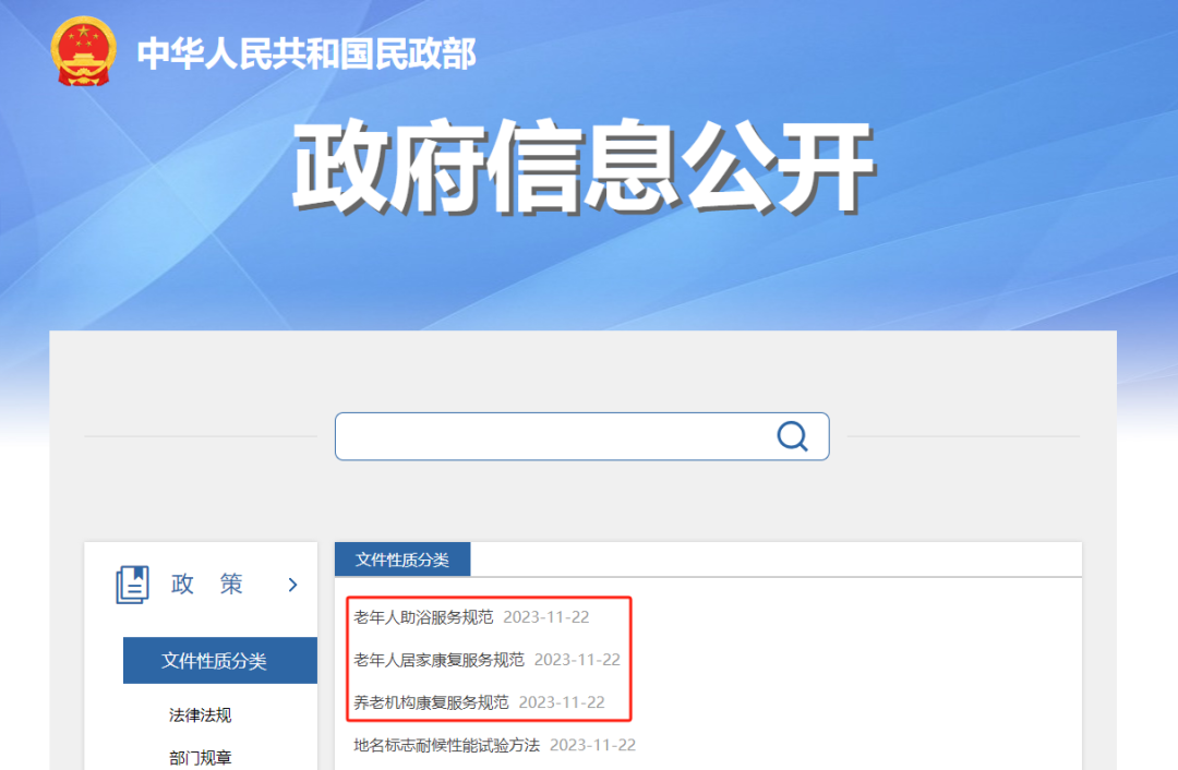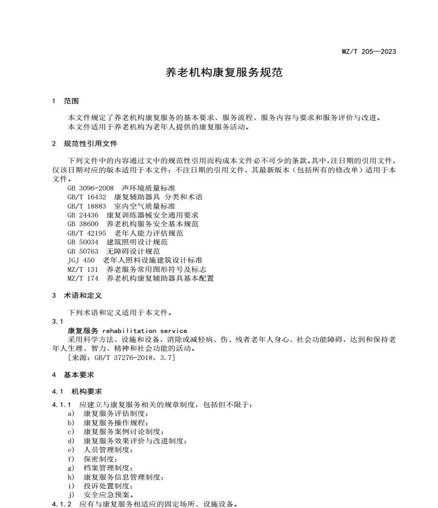 近日,民政部公布《養(yǎng)老機構(gòu)康復(fù)服務(wù)規(guī)范》《老年人居家康復(fù)服務(wù)規(guī)范》《老年人助浴服務(wù)規(guī)范》等3項推薦性行業(yè)標(biāo)準(zhǔn),自2023年12月1日起實施。