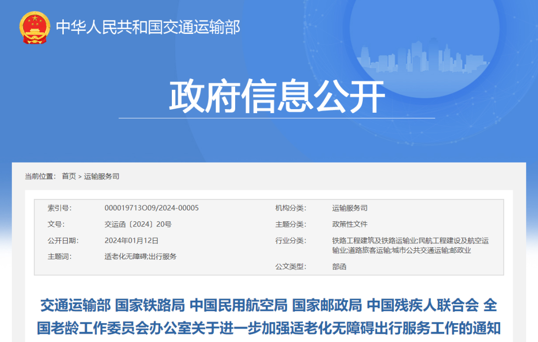 最新!交通運(yùn)輸部等六部門(mén):加強(qiáng)適老化無(wú)障礙出行服務(wù)工作