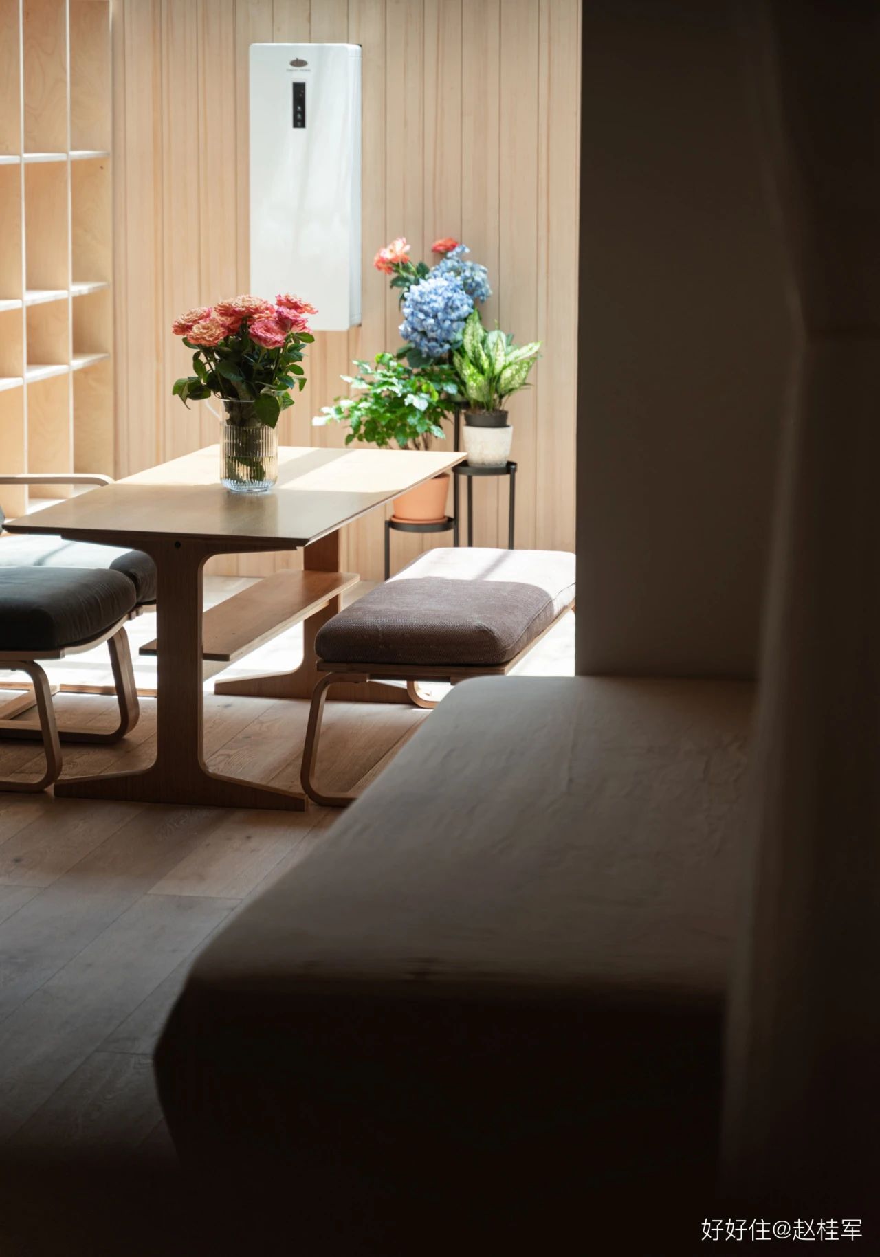 值得一提的是,這個區(qū)域的墻面也用了日式工法,工期短,環(huán)保性能高,很值得老破小參考: