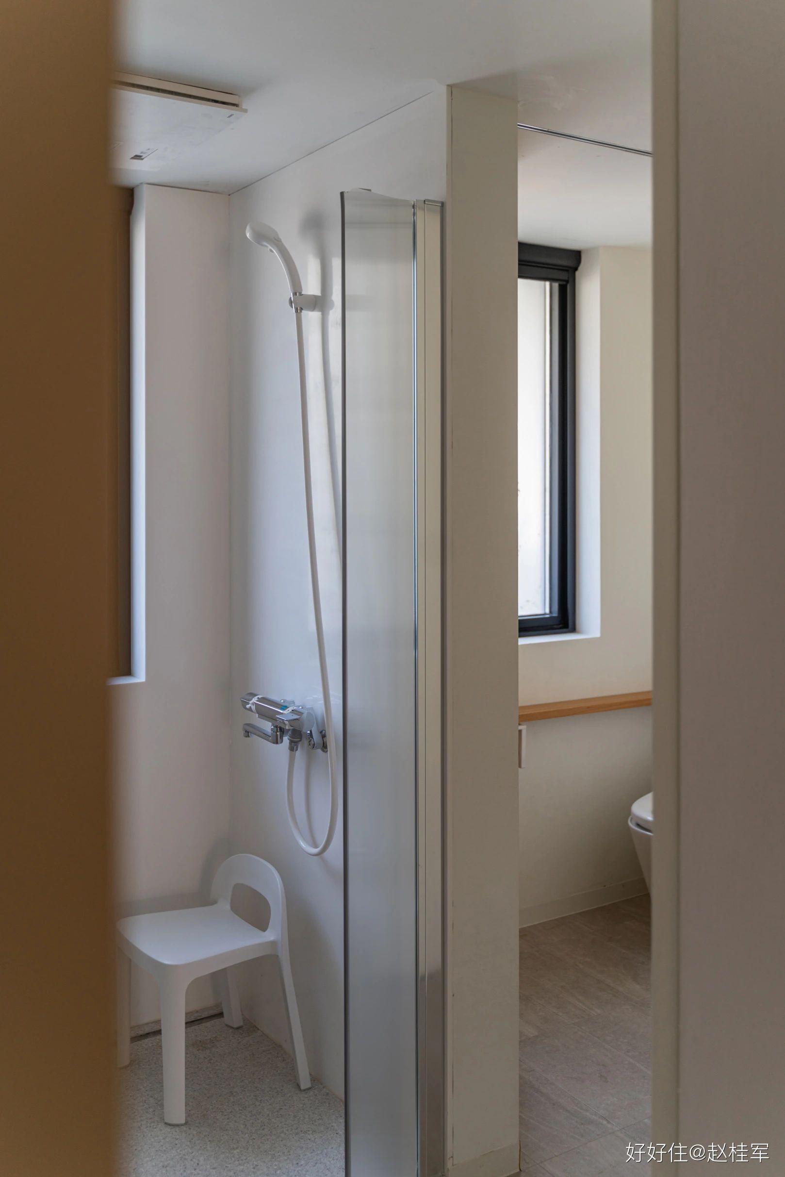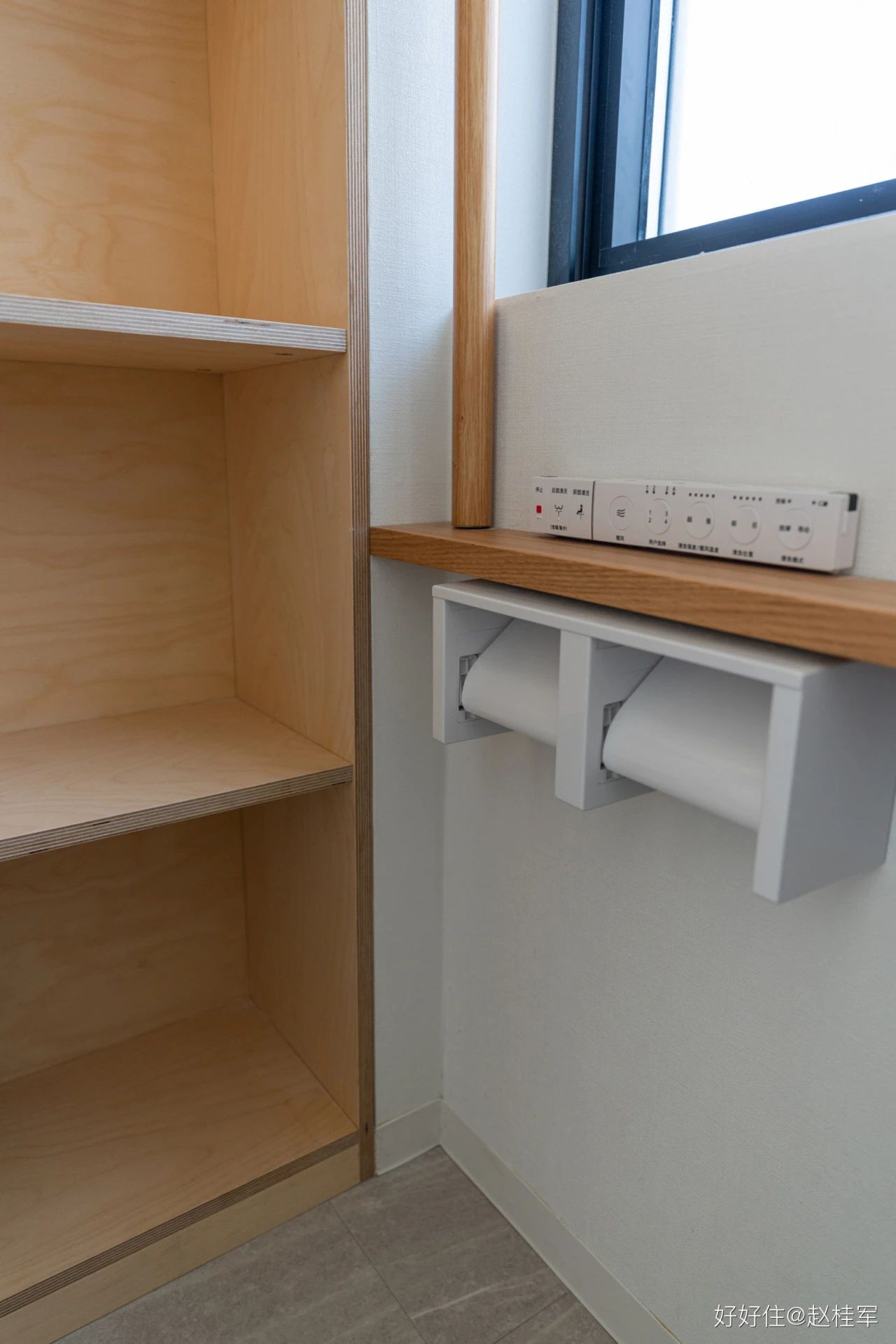 廚衛(wèi)干區(qū)地膠是日本新科的,防滑腳感好,為以后可能使用輪椅做準(zhǔn)備。助老設(shè)備 NAKA 除了能放雙卷紙,也有扶手功能,能夠起到支撐作用。