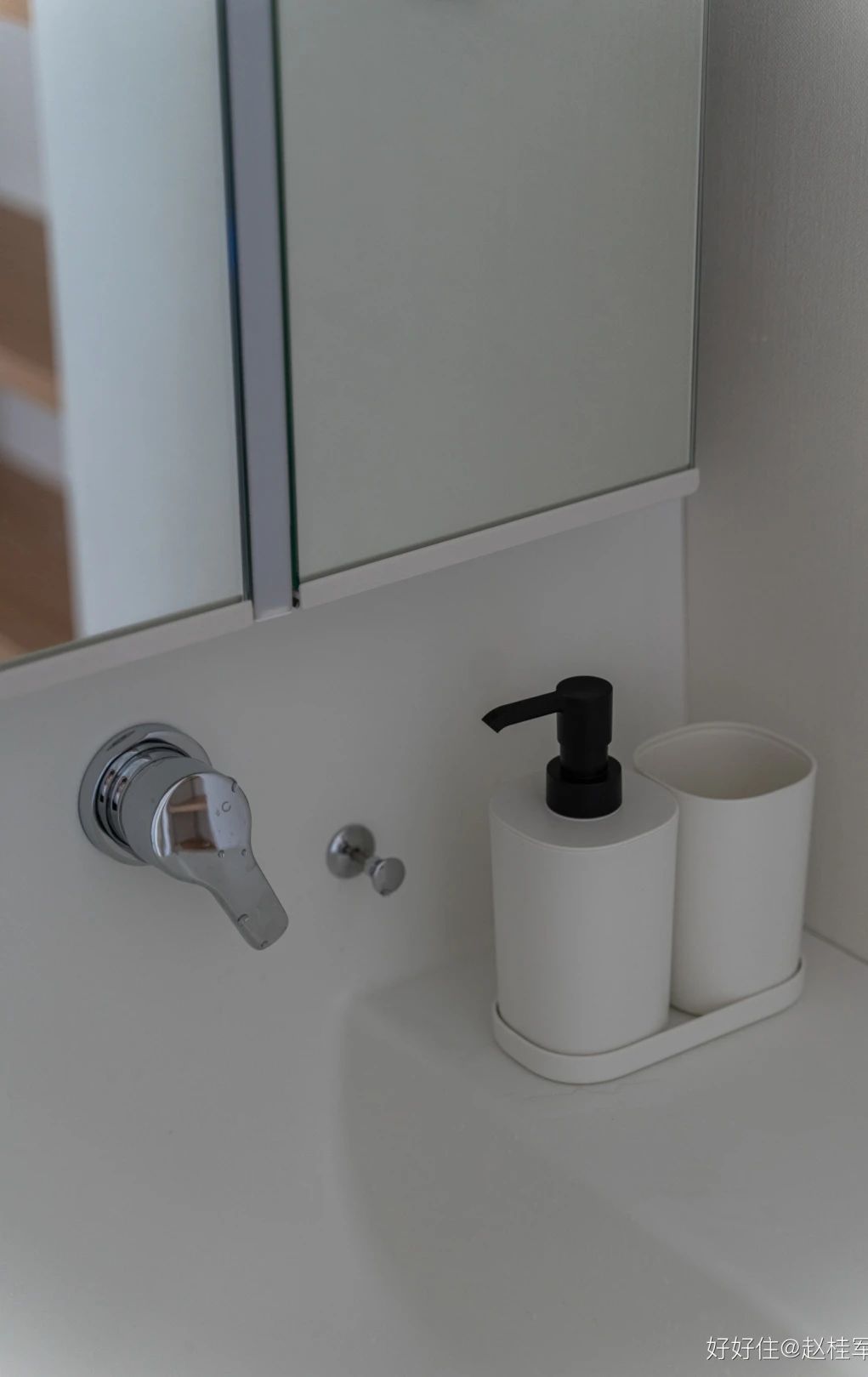 洗臉盆是 Sanwacompany 系列的 PLAIN-VUPRIGHT,空間利用率高,簡潔現(xiàn)代。一體化的樣式,也很容易打理。