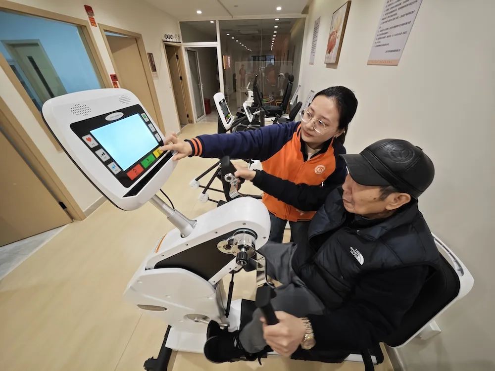 健康生活重在防病,如何鼓勵老人們科學(xué)鍛煉就成為這家智慧養(yǎng)老院另一個智能化方向。在養(yǎng)老院的智能健身房,看到了多臺智能化健身康復(fù)器材,并在其家門口為老服務(wù)站設(shè)立了“長者健康運動之家”,為老年人提供體質(zhì)測試、基礎(chǔ)健康檢測、科學(xué)健身指導(dǎo)、慢性病運動干預(yù)、運動康復(fù)訓(xùn)練、健康知識普及和休閑社交等“一站式”運動康養(yǎng)服務(wù)。老人們每個月只需花幾十塊錢,就能通過體檢確定鍛煉項目,之后就可以戴上智能手環(huán),在智慧健身房選擇最適合自身情況的設(shè)備,并在專人的指導(dǎo)幫助下使用,所有的身體數(shù)據(jù)都會即時上傳,讓護(hù)理人員能夠?qū)﹀憻挿桨搁_展優(yōu)化調(diào)整。