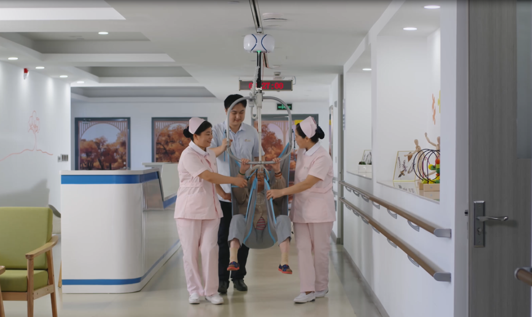 天軌系統(tǒng)可以輔助工作人員在老人移位、洗浴時,減輕其工作強度和難度,提高工作效率,同時避免轉(zhuǎn)運時造成二次傷害。